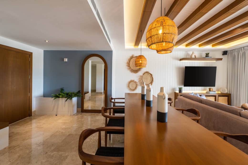 Disfruta de este maravilloso departamento, ubicado en la exclusiva zona de Playa Mujeres, Cancún. Kilómetros de exclusiva playa de arena blanca libre de sargazo y mar azul turquesa libres de multitudes. Las magníficas instalaciones de este desarrollo residencial tipo resort de lujo: marina para yates y campo de golf (costo extra) beach club, gimnasio, cancha de tenis y pádel, cancha de básquet, restaurante, minisúper, ludoteca, business lounge, 5 piscinas y más! El departamento esta ubicado en planta baja y a solo 140 metros de la playa, disfruta su terraza y solárium privado con vista a la Marina. Master bedroom con cama King size y walk in closet, tina y baño completo. Habitación secundaria con literas: 1 cama matrimonial y 3 individuales. Ocupación máxima 4 adultos y 3 menores de 16 años. A solo 35 minutos del Aeropuerto Internacional de Cancún se encuentra Playa Mujeres, un exclusivo destino de golf y marina ubicado en la costa continental de Isla Mujeres, México. Situada en una de las costas más hermosas del Caribe Mexicano, Playa Mujeres es el destino perfecto para un viaje especial. Sumérjase en el verdadero lujo, disfrute de su gastronomía y cálida hospitalidad, rodeado de una naturaleza exuberante. Experimente unas vacaciones más allá de cualquier otra que haya vivido antes. Localizado a minutos de tu departamento hay servicio de Taxi de Playa Mujeres, aceptan USD/ Pesos/tarjetas de crédito y débito. Tanto el personal ubicado en Concierge como el personal de seguridad de la caseta pueden solicitar sus servicios para ti. Si vienes en auto de renta tienes un lugar privado para estacionar. Durante tu estancia y si así lo requieres tenemos servicio de concierge, que puede asistirte en lo que tu requieras. Botiquín de primeros auxilios y extintor disponibles en tu espacio.